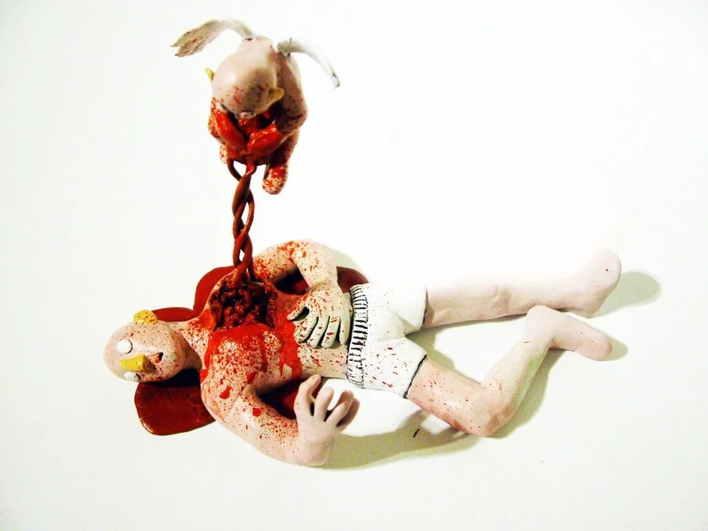 Pulling at the Heart Strings, polymer clay sculpture.