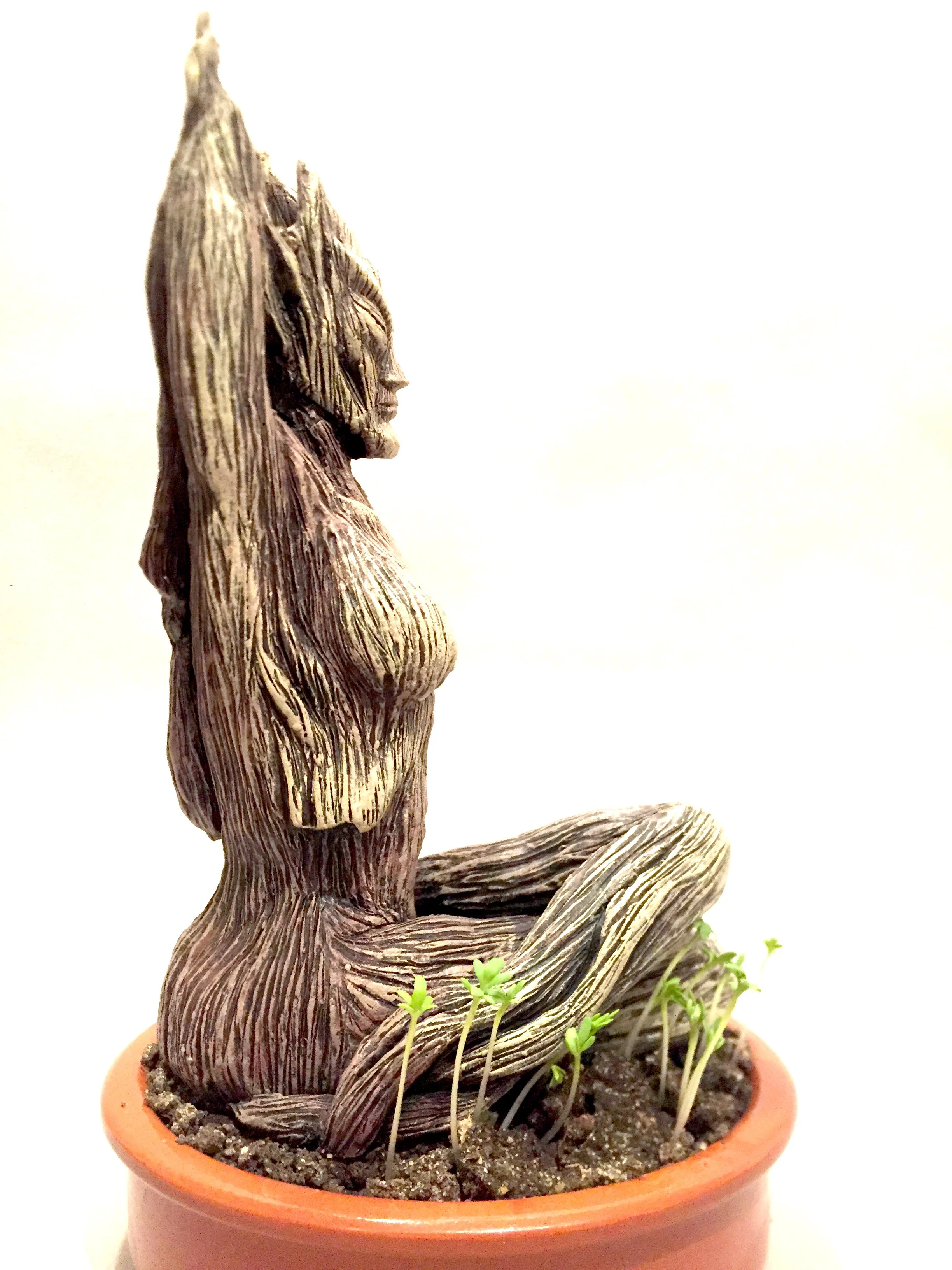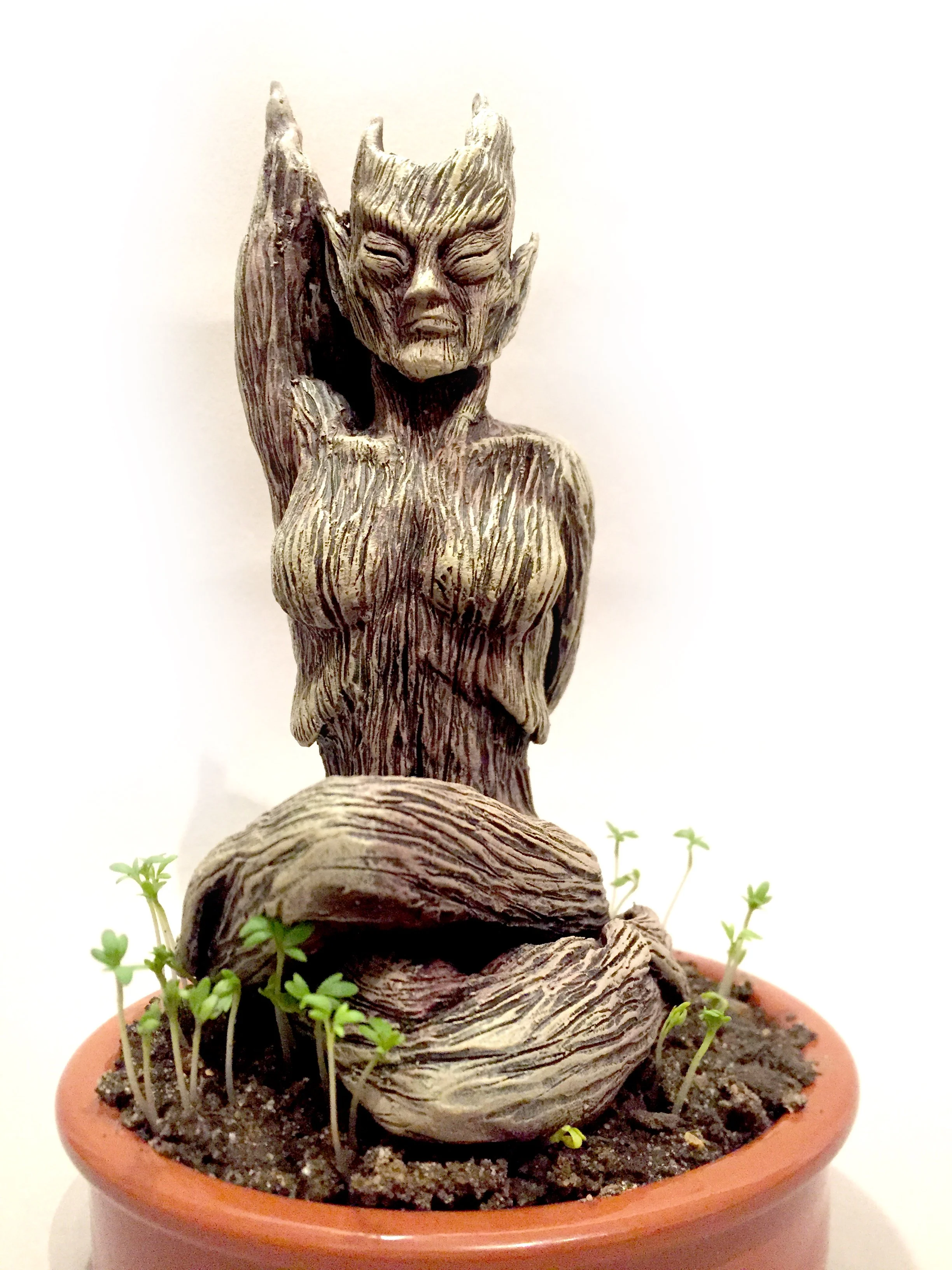 Dryad planter, polymer clay sculpture.